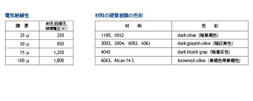 一般のアルミニウムの陽極被膜は、電流による被膜の化成と電解液により、その化成膜を溶解する速度との差が被膜となって残ることになるので、化成被膜を破壊しない程度に電流密度を大きくし液温を低くすると、膜の化成が速くて溶ける速度が遅くなり緻密硬度の被膜が化成します。そこで10℃以下で陽極電気分解操作をすると、低温ほど硬度の高い被膜が得られます。